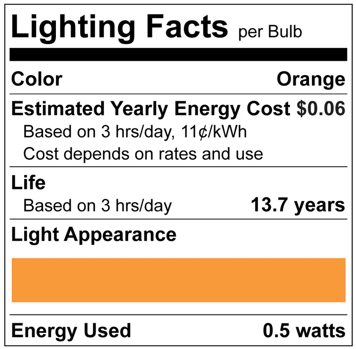 The Luxrite LR21736 is an S14 LED Edison bulb with a vivid yellow filament design, crafted for string lights and festive displays. This ultra-efficient 0.5W bulb matches an 11W incandescent equivalent, fits E26 medium bases, and operates at 120V with a wide 300-degree beam angle. Measuring 1.77 inches wide by 3.26 inches tall in clear glass, it earns UL listing and wet-location rating for reliable indoor or outdoor use year-round. With a 15,000-hour lifespan and 2-year warranty, it adds energy-saving holiday cheer without flicker or delay.