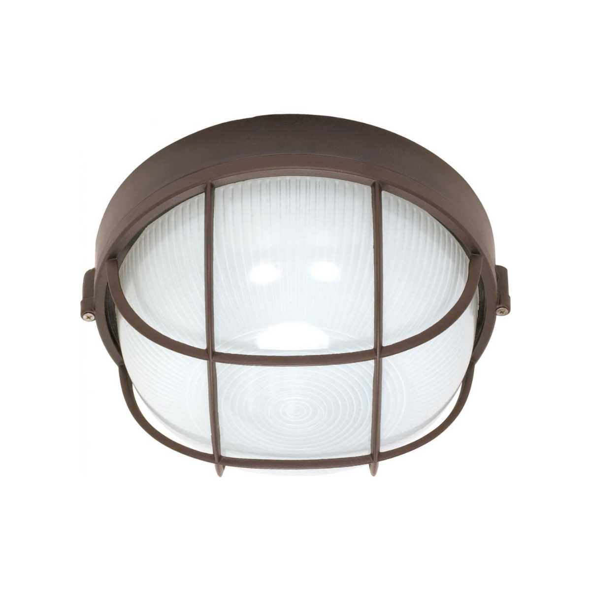 This medium-based incandescent bulkhead fixture is available in two finishes: Semi-Gloss White and Architectural Bronze. Its frosted white glass design makes it ideal for outdoor lighting purposes. Comes with a 1-year limited warranty.