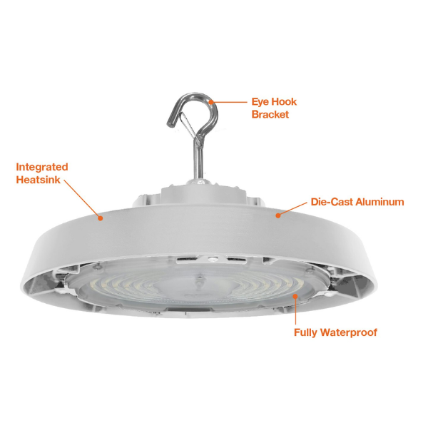 100/120/150W Round High Bay, Wattage & CCT Selectable, High Voltage, White Finish by EnvisionLED
