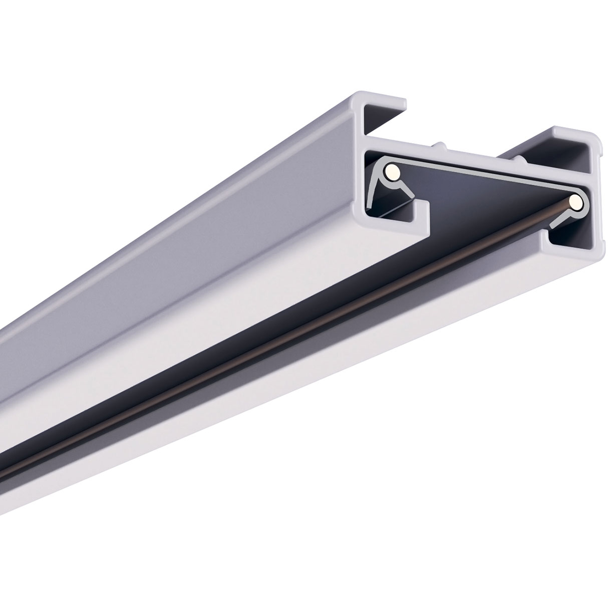 Single circuit track is available for 120V applications. Single hot and neutral conductors are rated for 20 Amps per branch circuit. Copper electrical conductors are concealed in an insulating thermo plastic low profile track cross-section.