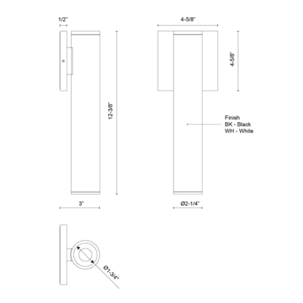 12" Lorna (2" Dia.) Round Cylinder Wall Sconce, White Finish by Kuzco