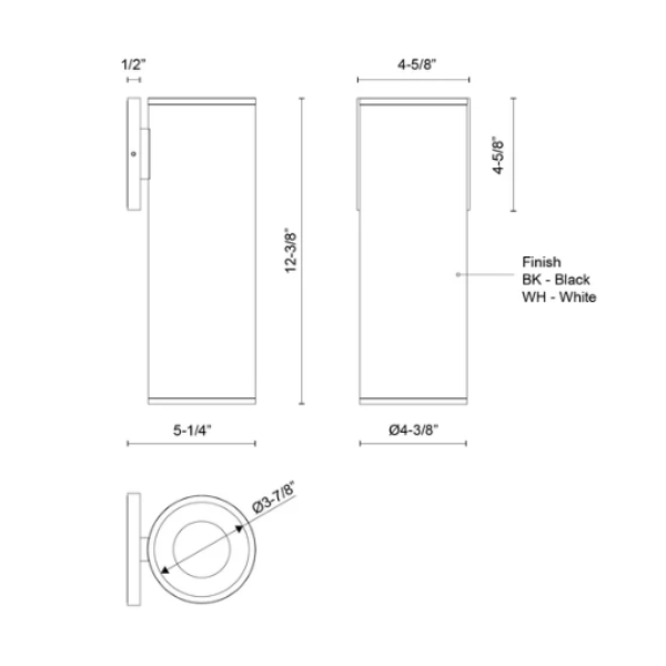 12" Lorna (4" Dia.) Round Cylinder Wall Sconce, White Finish by Kuzco