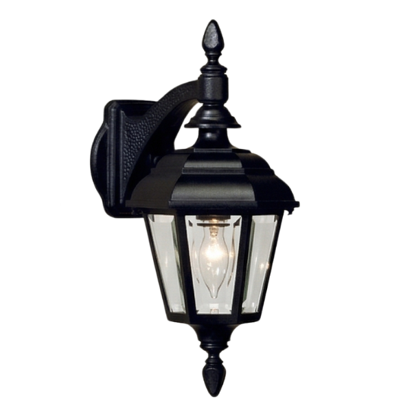 Home Decorative Exterior 15" Jamestown 6-Sided Reverse Wall Mount, E26, Clear Beveled Glass/Black Finish by Hanover Lantern