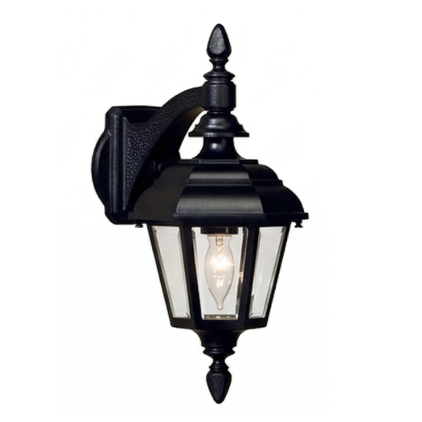 Home Decorative Exterior 15" Jamestown 6-Sided Reverse Wall Mount, E26, Clear Glass/Black Finish by Hanover Lantern