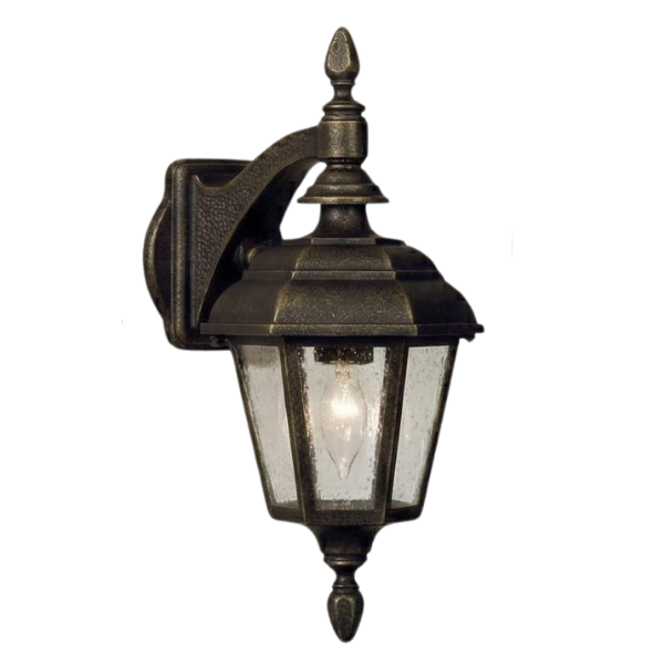 Home Decorative Exterior 15" Jamestown 6-Sided Reverse Wall Mount, E26, Clear Seeded Acrylic/Brass Finish by Hanover Lantern