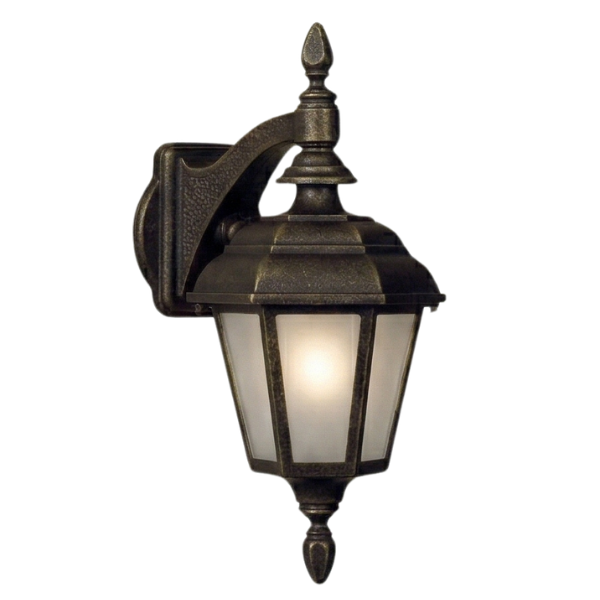 Home Decorative Exterior 15" Jamestown 6-Sided Reverse Wall Mount, E26, Frosted Glass/Brass Finish by Hanover Lantern