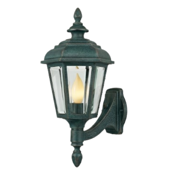 15" Jamestown 6-Sided Wall Mount, E26, Clear Beveled Glass/Verde Copper Finish by Hanover Lantern