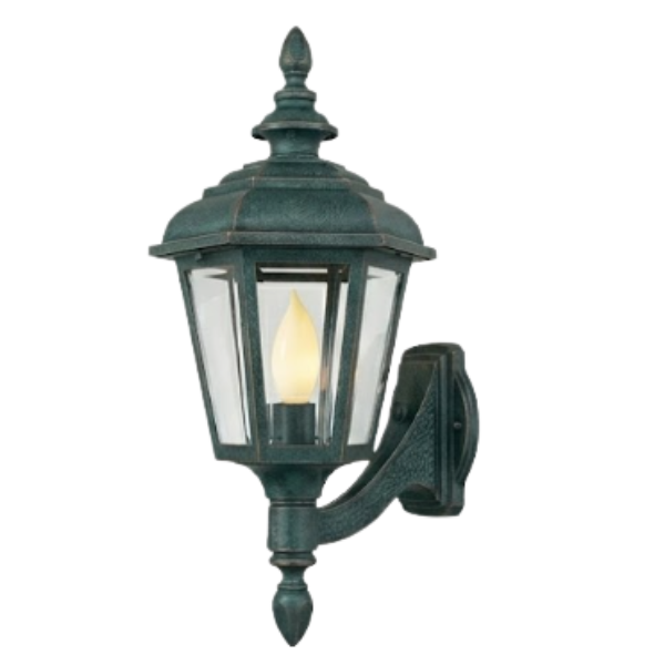 Home Decorative Exterior 15" Jamestown 6-Sided Wall Mount, E26, Clear Glass/Verde Copper Finish by Hanover Lantern