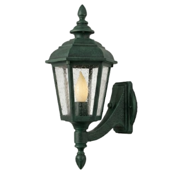 15" Jamestown 6-Sided Wall Mount, E26, Clear Seeded Glass/Verde Finish by Hanover Lantern