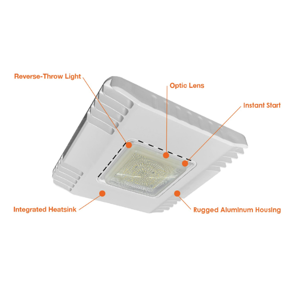 150W Slim-Line Large Square Canopy, 40/50K, 120-277V, White Finish by EnvisionLED