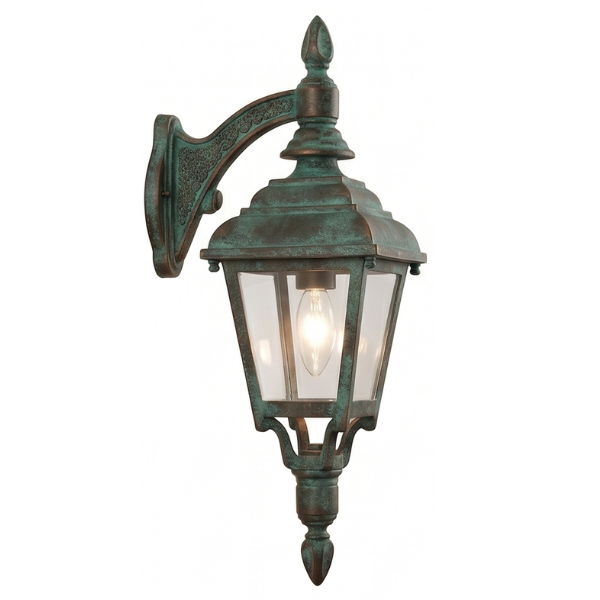 16" Plymouth 4-Sided Reverse Wall Mount, E26, Clear Acrylic/Verde Copper Finish by Hanover Lantern