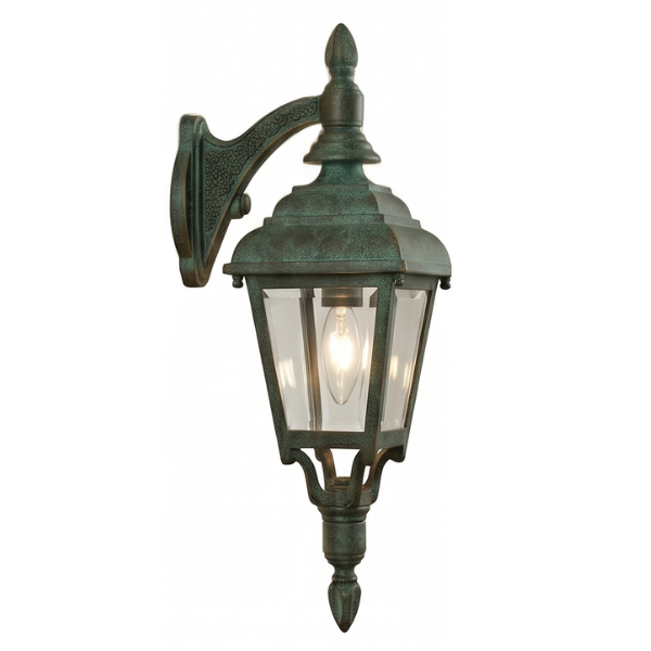 16" Plymouth 4-Sided Reverse Wall Mount, E26, Clear Beveled Glass/Verde Bronze Finish by Hanover Lantern