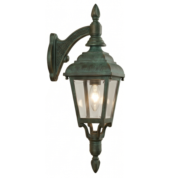 16" Plymouth 4-Sided Reverse Wall Mount, E26, Clear Glass/Verde Bronze Finish by Hanover Lantern