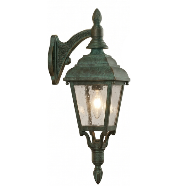 16" Plymouth 4-Sided Reverse Wall Mount, E26, Clear Seeded Acrylic/Verde Bronze Finish by Hanover Lantern