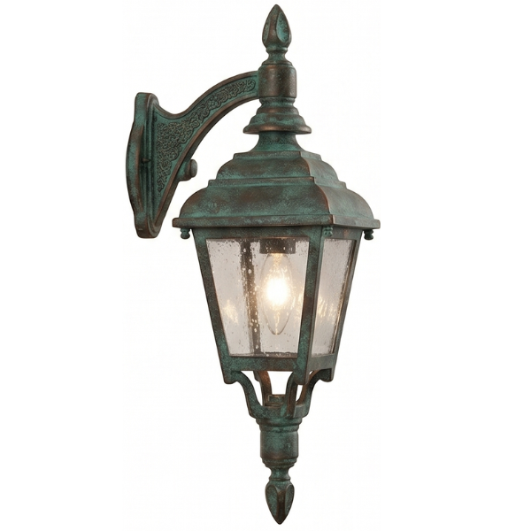 16" Plymouth 4-Sided Reverse Wall Mount, E26, Clear Seeded Glass/Verde Copper Finish by Hanover Lantern