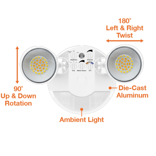 16/25W XS-Line Round Double Head PIR w/ Ambient Light & Motion Sensor, CCT Selectable, 120V, White Finish by EnvisionLED