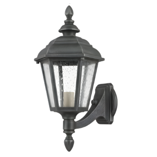 Home Decorative Exterior 15" Jamestown 6-Sided Wall Mount, E26, Clear Seeded Acrylic/Silver Finish by Hanover Lantern