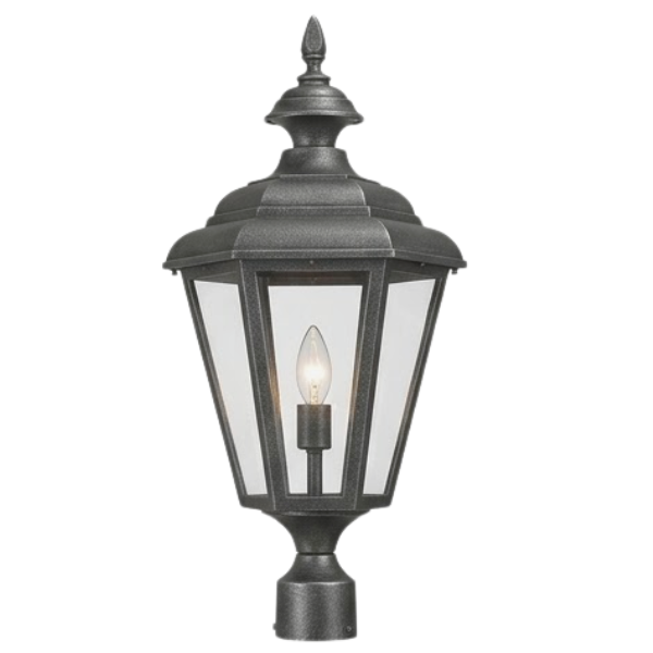 22" Jamestown 6-Sided Post Top, E26, Clear Acrylic/Silver Finish by Hanover Lantern