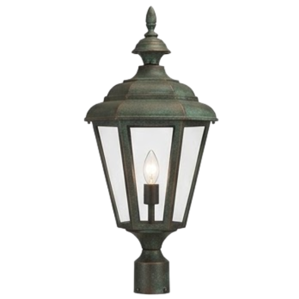 22" Jamestown 6-Sided Post Top, E26, Clear Acrylic/Verde Copper Finish by Hanover Lantern