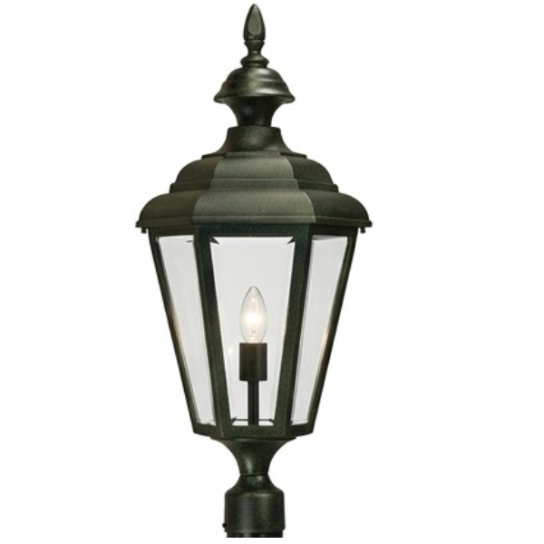 22" Jamestown 6-Sided Post Top, E26, Clear Glass/Verde Bronze Finish by Hanover Lantern