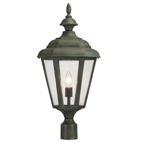 22" Jamestown 6-Sided Post Top, E26, Clear Seeded Acrylic/Verde Copper Finish by Hanover Lantern