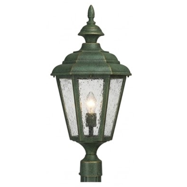22" Jamestown 6-Sided Post Top, E26, Clear Seeded Glass/Verde by Hanover Lantern