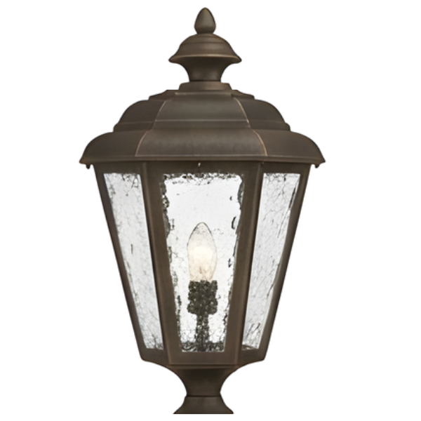 22" Jamestown 6-Sided Post Top, E26, Clear Seeded Glass/Weathered Bronze Finish by Hanover Lantern