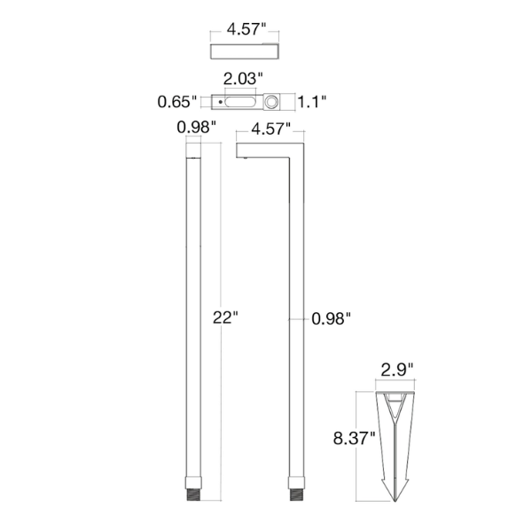 22" L-Shape Brass Path Light, Matte Black Finish by EnvisionLED