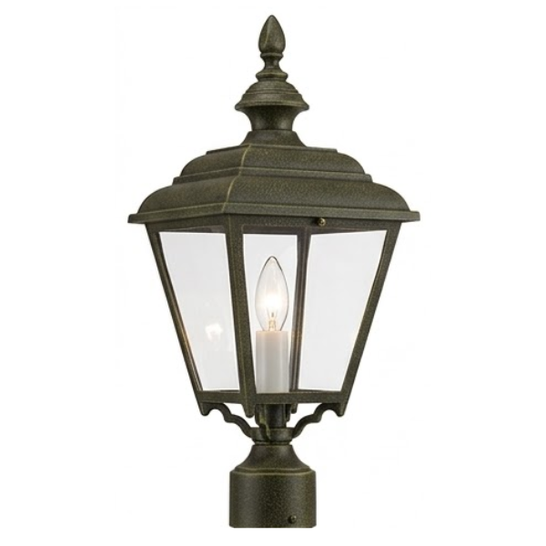 22" Plymouth 4-Sided Post Top, E26, Clear Acrylic/Verde Bronze Finish by Hanover Lantern