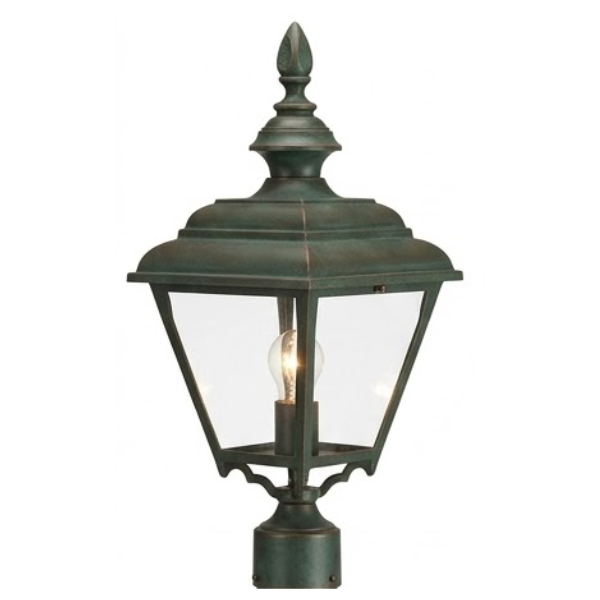 22" Plymouth 4-Sided Post Top, E26, Clear Acrylic/Verde Copper Finish by Hanover Lantern