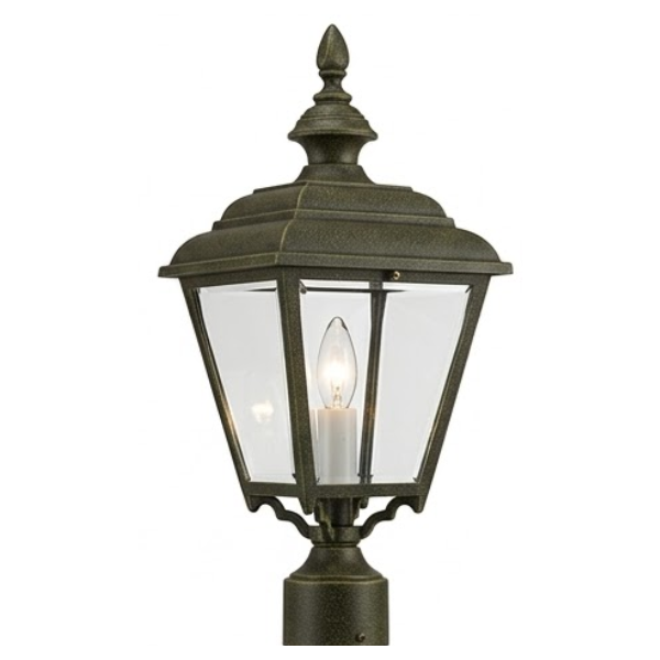 22" Plymouth 4-Sided Post Top, E26, Clear Glass/Verde Bronze Finish by Hanover Lantern