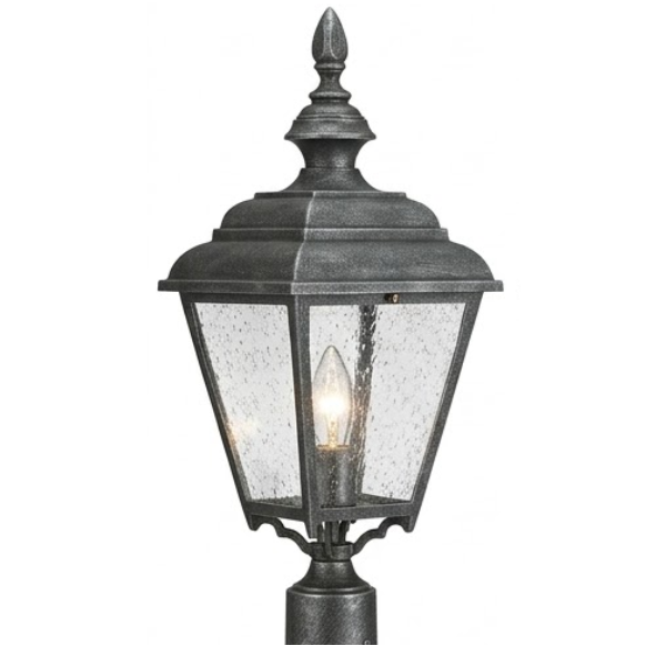 22" Plymouth 4-Sided Post Top, E26, Clear Seeded Glass/Silver Finish by Hanover Lantern