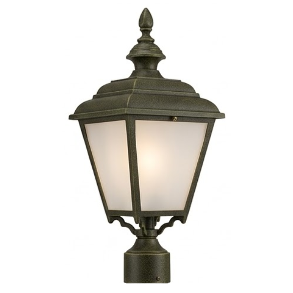 22" Plymouth 4-Sided Post Top, E26, Opal Acrylic/Verde Bronze Finish by Hanover Lantern