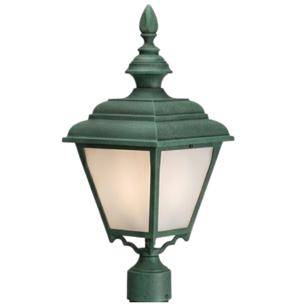 22" Plymouth 4-Sided Post Top, E26, Opal Acrylic/Verde Finish by Hanover Lantern