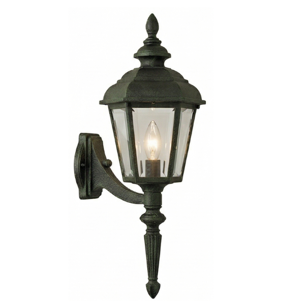23" Jamestown 6-Sided Wall Mount w/ Tail, E26, Clear Beveled Glass/Verde Bronze Finish by Hanover Lantern