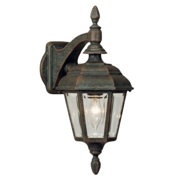 24" Jamestown 6-Sided Reverse Wall Mount, E26, Clear Beveled Glass/Verde Copper Finish by Hanover Lantern
