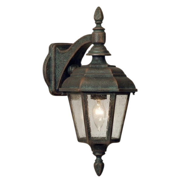 Home Decorative Exterior 24" Jamestown 6-Sided Reverse Wall Mount, E26, Clear Seeded Acrylic/Verde Copper Finish by Hanover Lantern