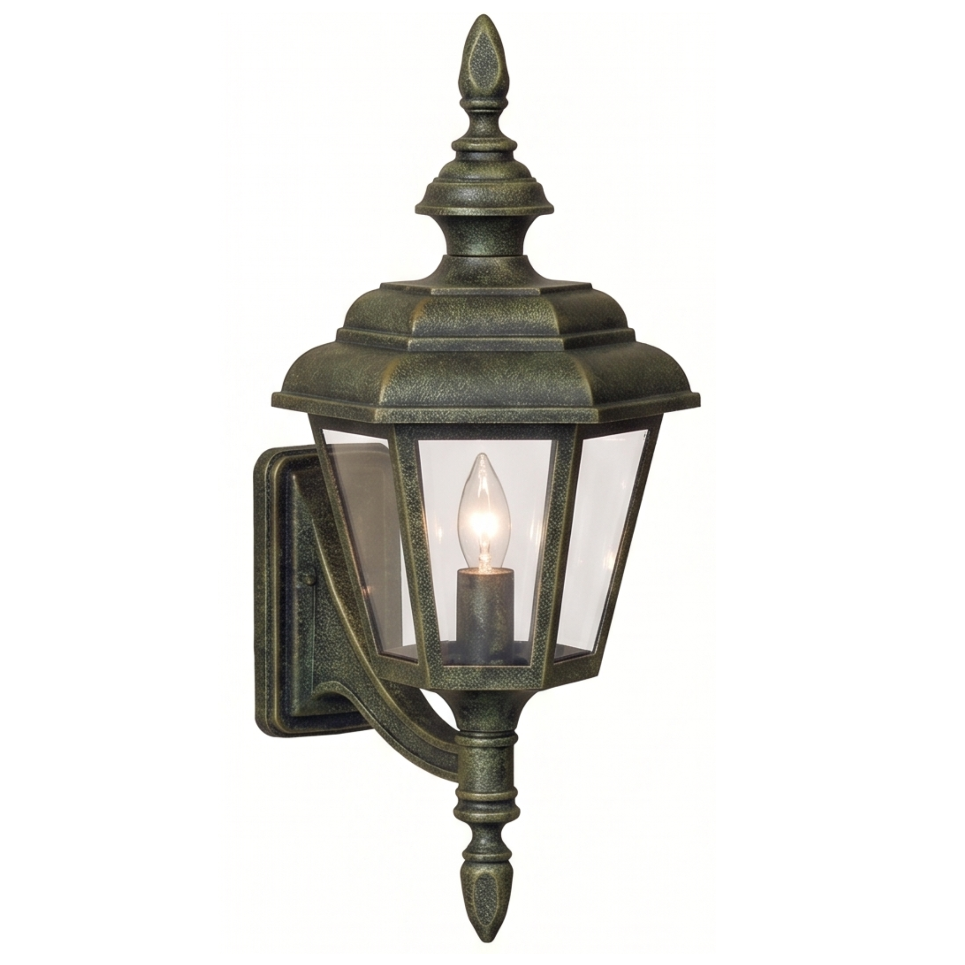 Home Decorative Exterior 24" Jamestown 6-Sided Wall Mount, E26, Clear Acrylic/Verde Bronze Finish by Hanover Lantern