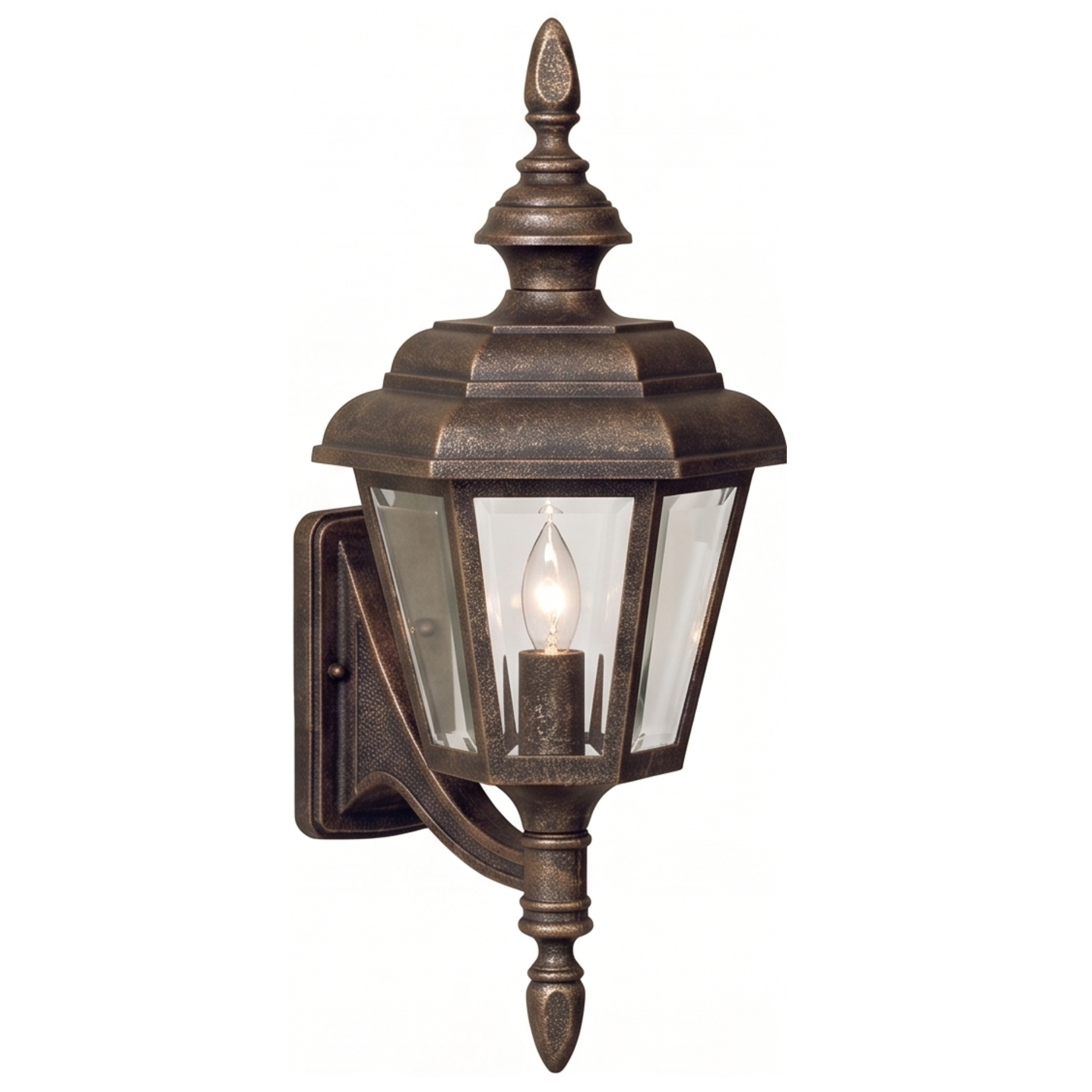 24" Jamestown 6-Sided Wall Mount, E26, Clear Beveled Glass/Weathered Bronze Finish by Hanover Lantern