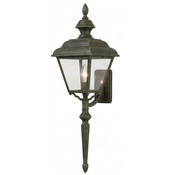 24" Plymouth 4-Sided Wall Mount w/ Tail, E26, Clear Acrylic/Verde Bronze Finish by Hanover Lantern