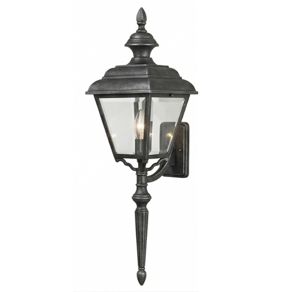 Home Decorative Exterior 24" Plymouth 4-Sided Wall Mount w/ Tail, E26, Clear Beveled Glass/Silver Finish by Hanover Lantern