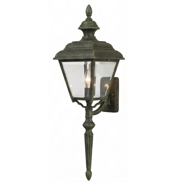 24" Plymouth 4-Sided Wall Mount w/ Tail, E26, Clear Beveled Glass/Verde Bronze Finish by Hanover Lantern