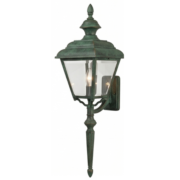 24" Plymouth 4-Sided Wall Mount w/ Tail, E26, Clear Beveled Glass/Verde Finish by Hanover Lantern