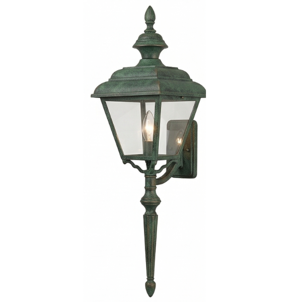 24" Plymouth 4-Sided Wall Mount w/ Tail, E26, Clear Glass/Verde Finish by Hanover Lantern