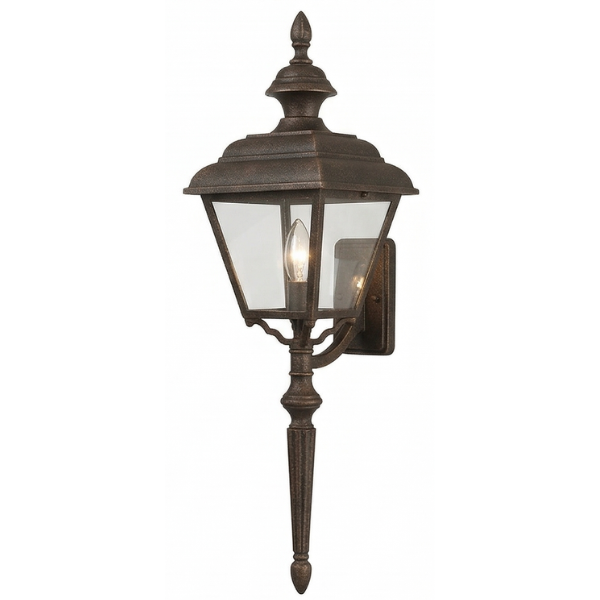 24" Plymouth 4-Sided Wall Mount w/ Tail, E26, Clear Glass/Weathered Bronze Finish by Hanover Lantern