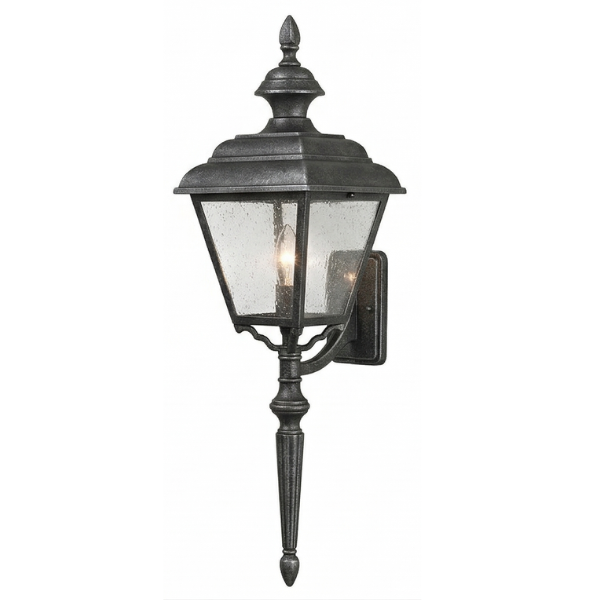 24" Plymouth 4-Sided Wall Mount w/ Tail, E26, Clear Seeded Acrylic/Silver Finish by Hanover Lantern