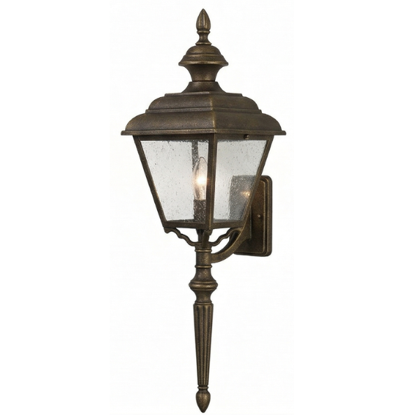 24" Plymouth 4-Sided Wall Mount w/ Tail, E26, Clear Seeded Glass/Brass Finish by Hanover Lantern
