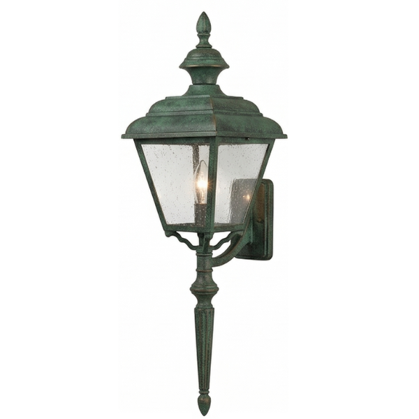 24" Plymouth 4-Sided Wall Mount w/ Tail, E26, Clear Seeded Glass/Verde Finish by Hanover Lantern