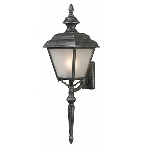 24" Plymouth 4-Sided Wall Mount w/ Tail, E26, Frosted Glass/Silver Finish by Hanover Lantern