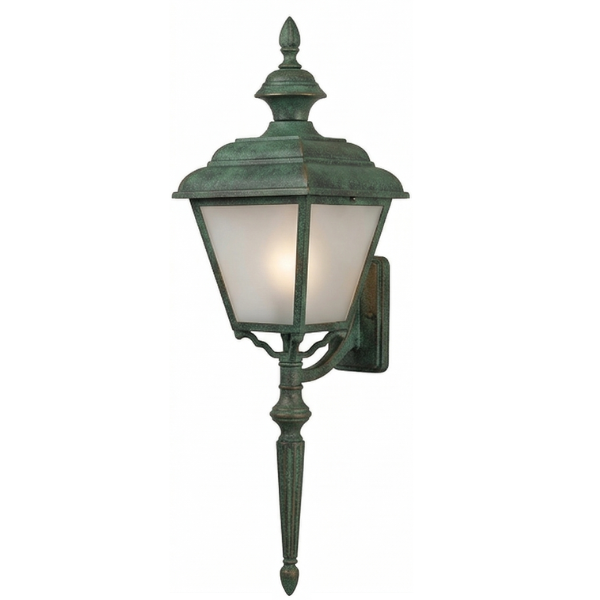24" Plymouth 4-Sided Wall Mount w/ Tail, E26, Frosted Glass/Verde Finish by Hanover Lantern